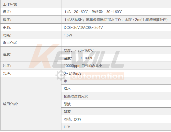 以下是科威勒自動化污水流量計供應商?提供的參數