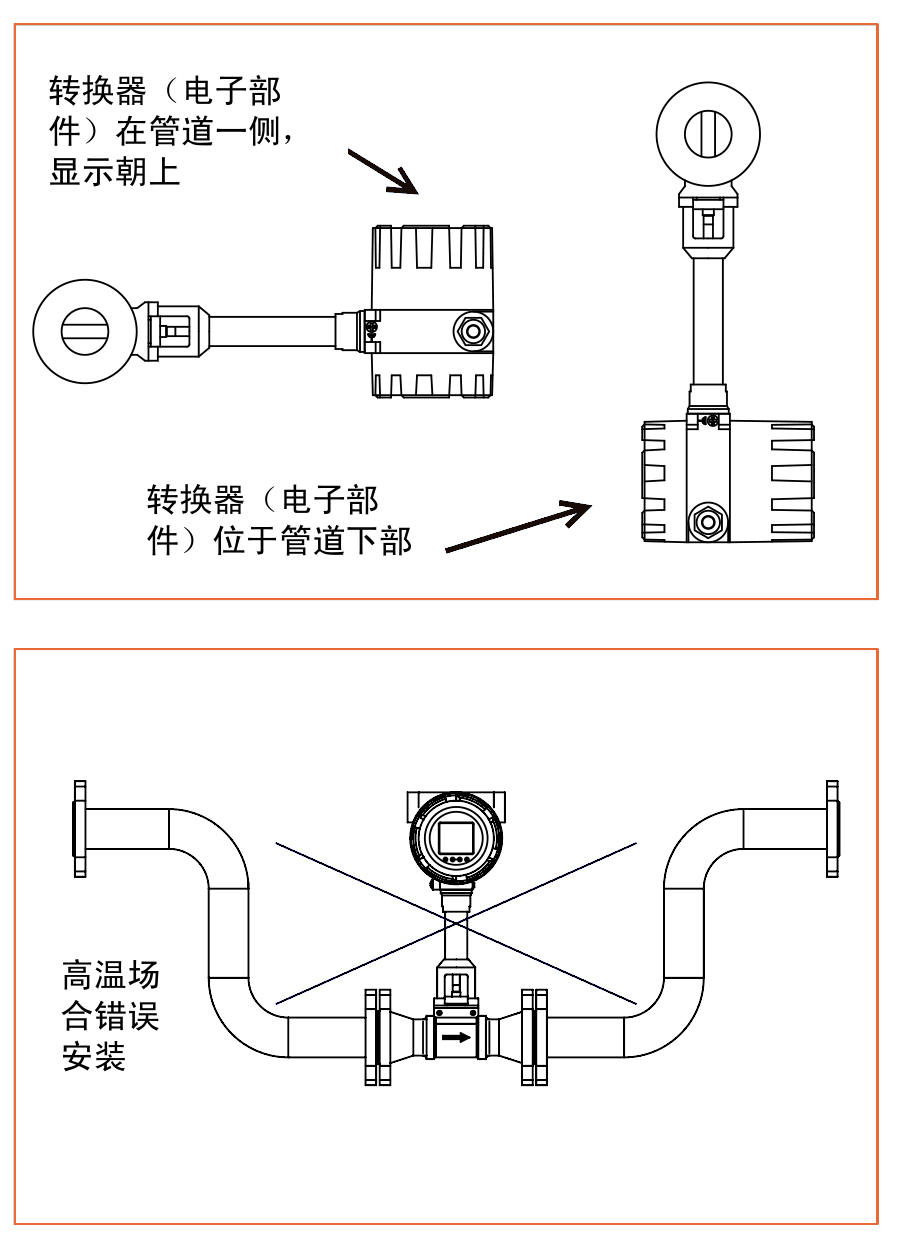 ※ 下圖為流量計在在高溫場合的安裝要求。
