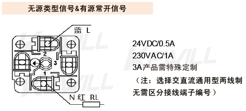交直流通用型;無源觸點信號 常閉信號單點設定(無LED指示燈)