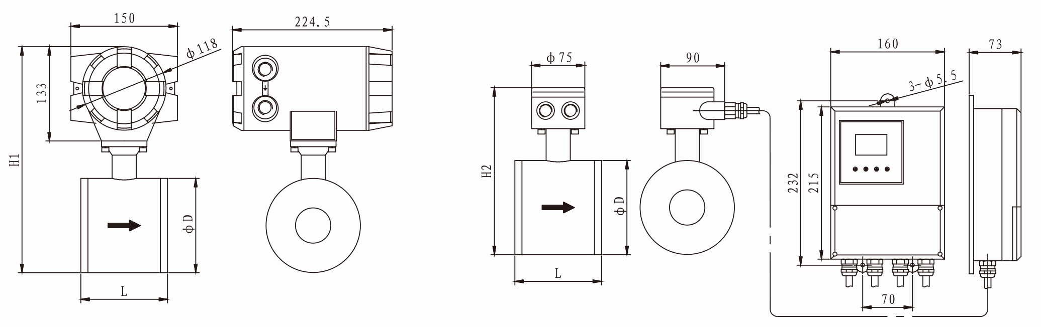 說明: 夾持型電磁流量計標配為二個測量電極,在選型時一定要配置接地環。否則流量計無法正常工作。