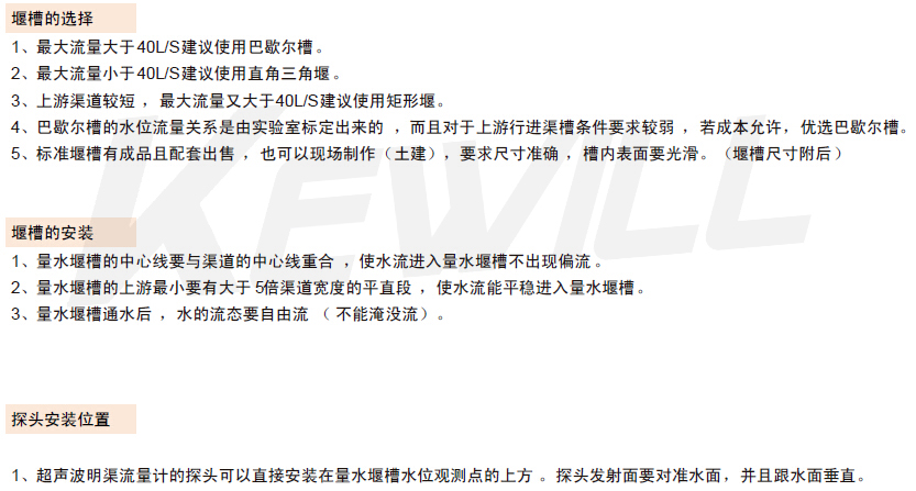 常用的量水堰槽有:巴歇爾槽、 三角堰、 矩形堰等,優選巴歇爾槽。