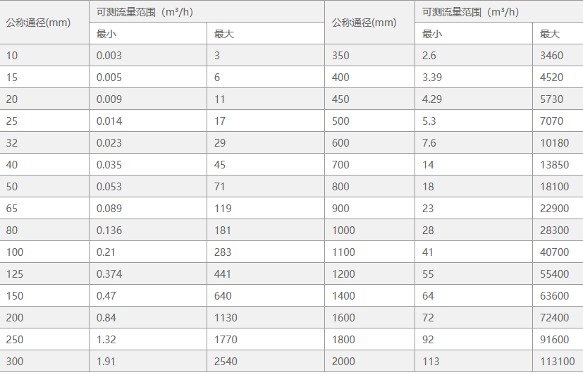 傳感器的耐壓與其內徑有關。按國家有關標準規定,對于標準型鋼管及法蘭,其最大耐壓如下: