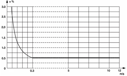 電磁流量計系統的準確性曲線圖(±0.5%)