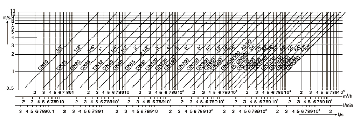 注: Q:流量 DN:管道內徑 V:流速