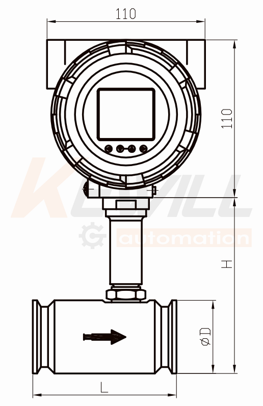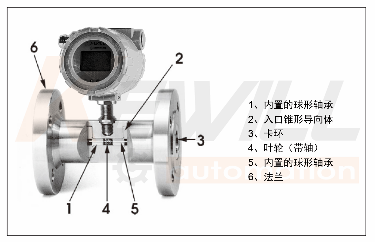 FR80船空煤油流量計(jì)是一種速度式流量計(jì)。如下圖所示,在管道中心安放一個(gè)渦輪,兩端由軸承支撐,當(dāng)流體通過管道時(shí),沖擊渦輪葉片,對(duì)渦輪產(chǎn)生驅(qū)動(dòng)力矩,使渦輪克服摩擦力矩和流體阻力矩而產(chǎn)生旋轉(zhuǎn);在一定的流量范圍內(nèi),對(duì)一定的流體介質(zhì)粘度、渦輪的旋轉(zhuǎn)角速度與流體流速成正比。由此,流體流速可通過渦輪的旋轉(zhuǎn)角速度得到,從而可以計(jì)算得到通過管道的流體流量。