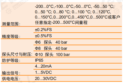 /ND  -50…50 °C; /PD 0…100 °C; /PH 0…300°C; /PL 任意指定量程
