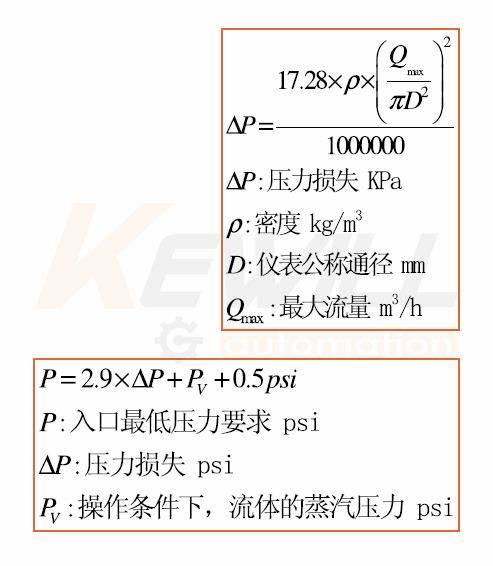 ● 入口壓力:測量液體流量時,流量計對入口壓力的最低要求按計算公式計算